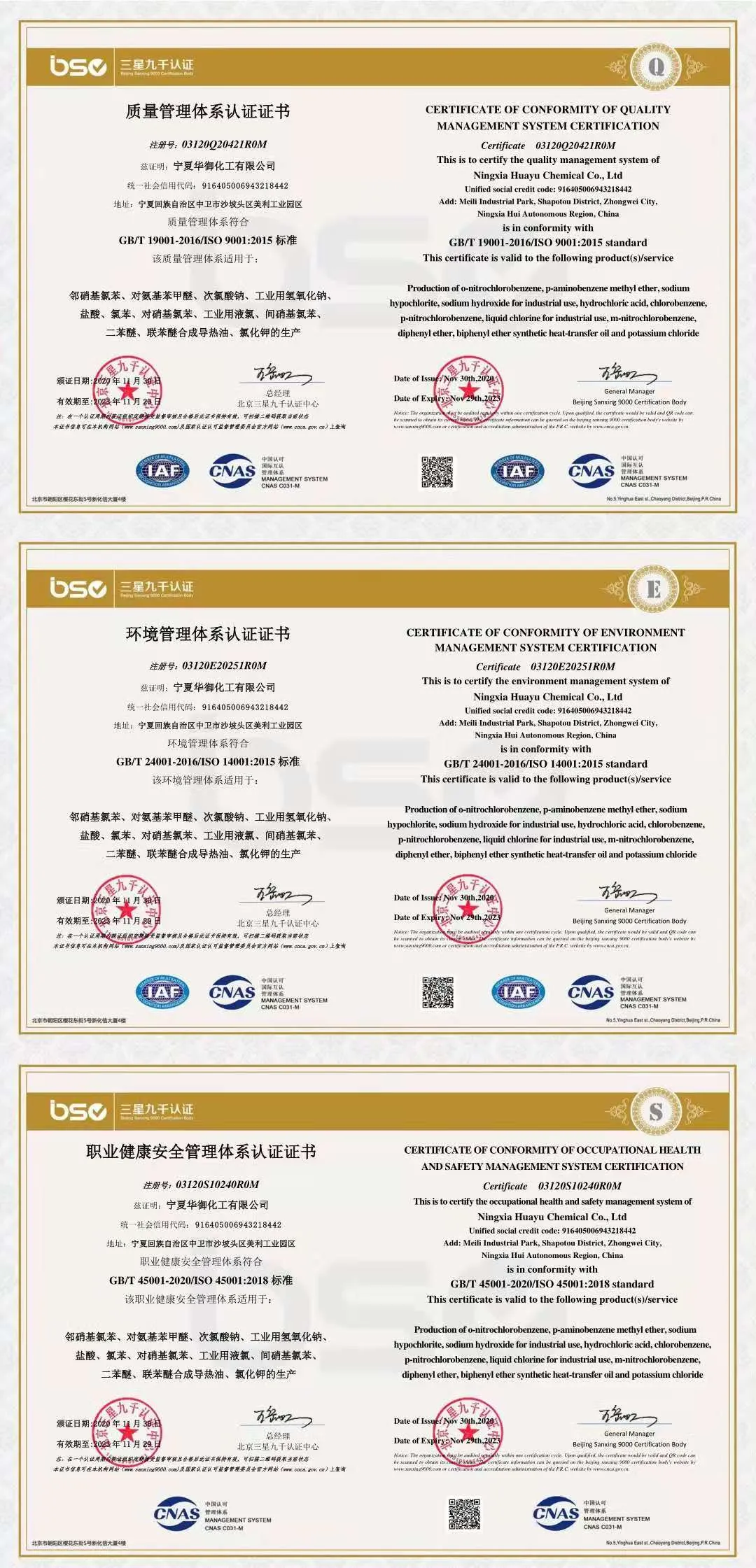 近日,公司正式获得由北京三星九千认证中心颁发的质量管理体系认证证书、环境管理体系认证证书和职业健康安全管理体系认证证书。这标志着公司2020年公司五大目标任务之一的“三合一”认证工作圆满完成,也意味着公司的各项管理更加规范化、精细化。