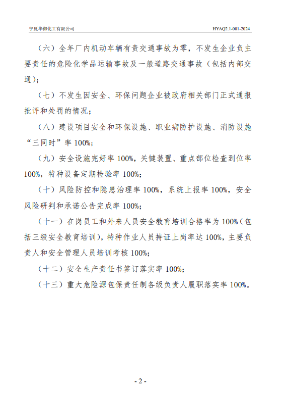 宁夏华御化工有限公司2024年安全生产方针目标